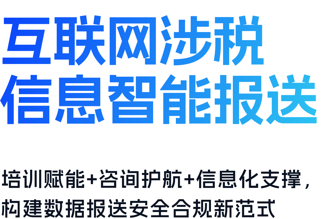 “培训 + 咨询 + 信息化” 全流程赋能,自动整合平台内涉税数据,按税务要求生成标准化报表;一键完成报送,确保数据合规、安全,降低人工报送成本与错误率。